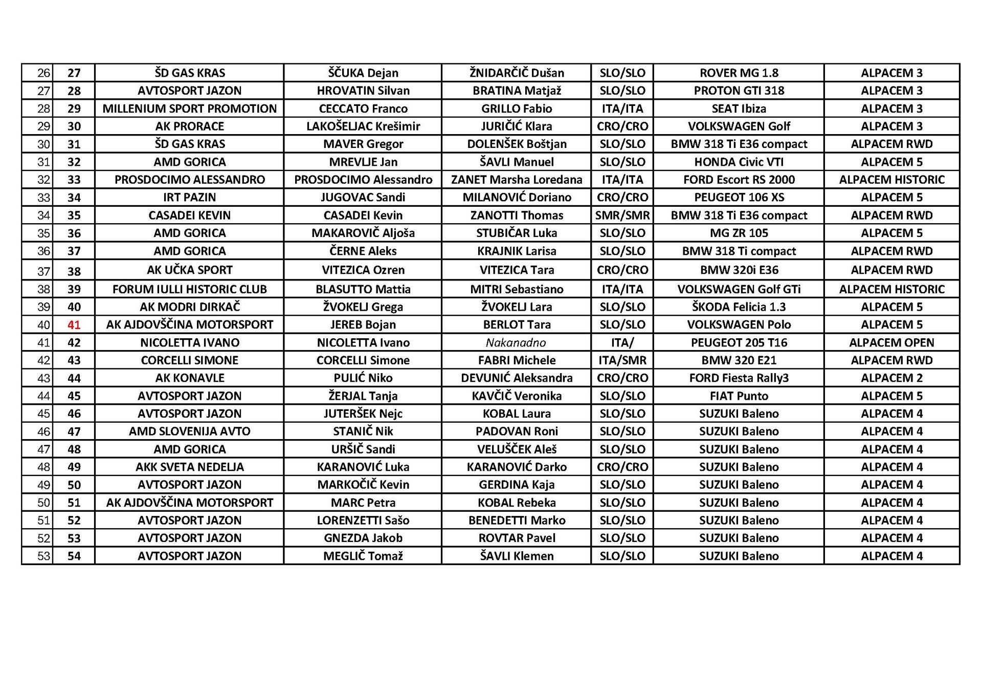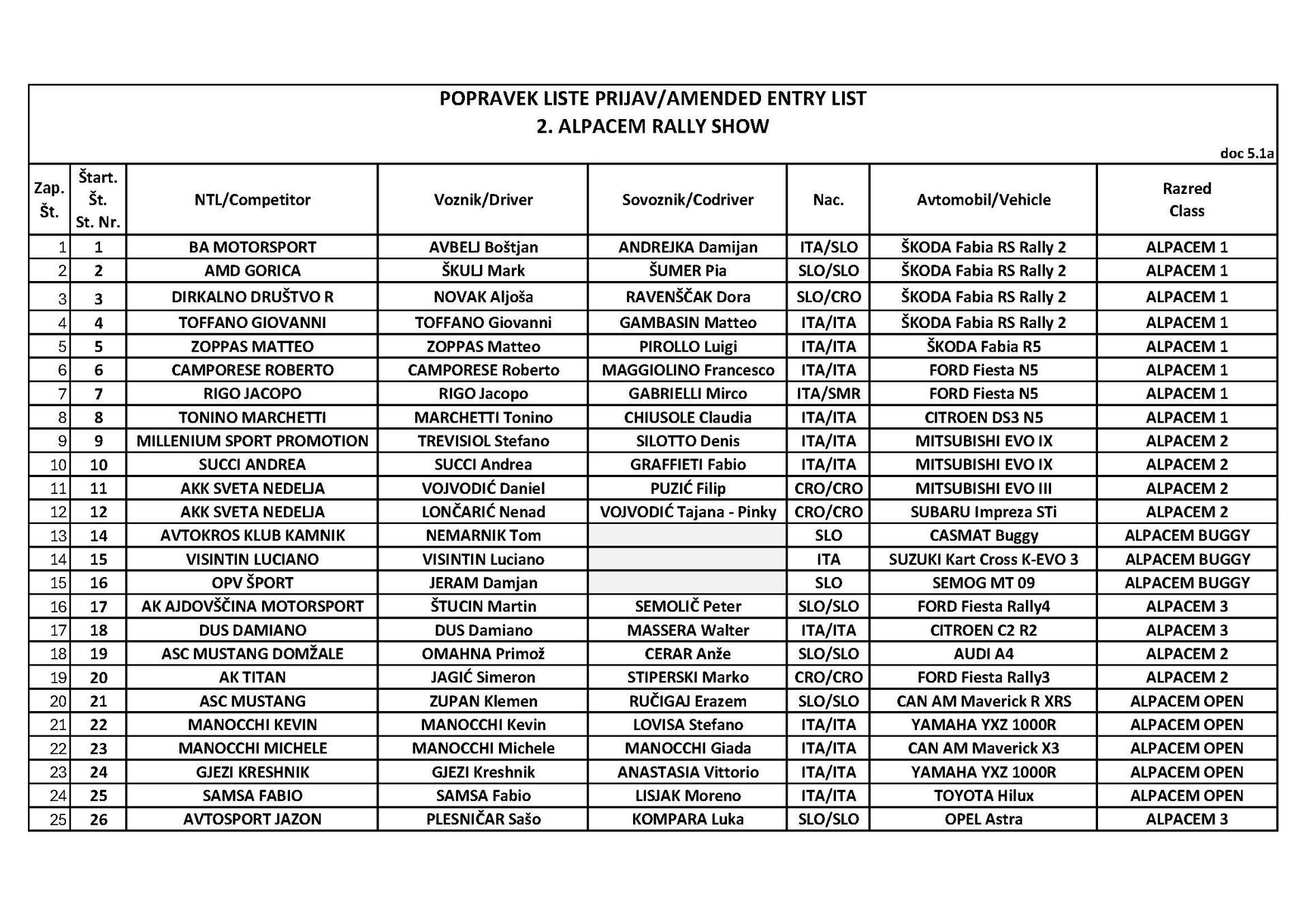 Entry List pdf