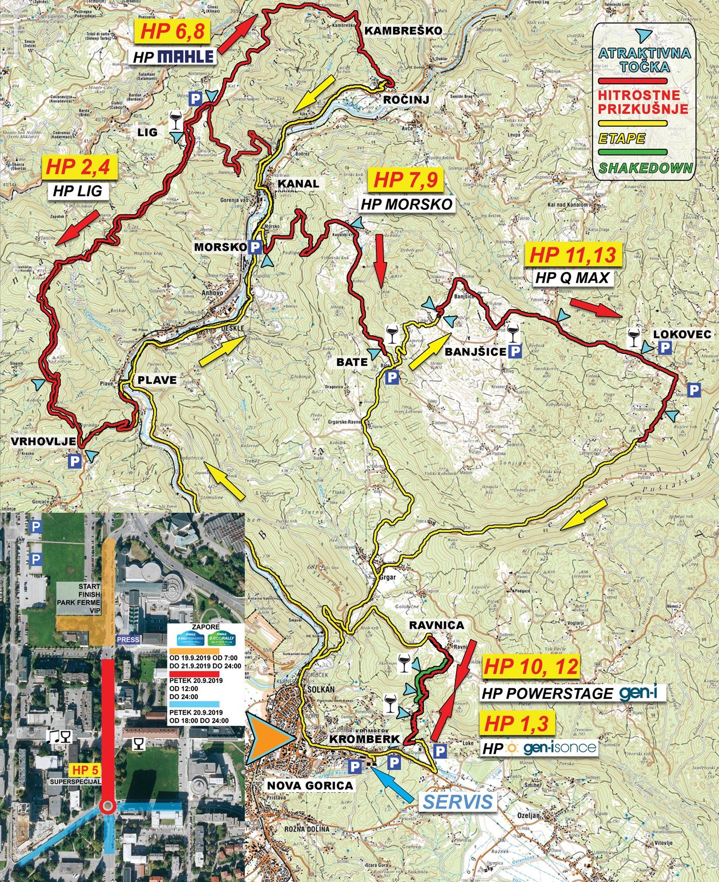 Prvi dan relija bosta dvakrat na sporedu preizkušnji Lig in Kromberk, zvečer pa nato še glavna novost letošnjega relija – 1,1 kilometra dolg superspecial v središču Nove Gorice. Ta bo prvovrsten zaključek prvega tekmovalnega dneva.