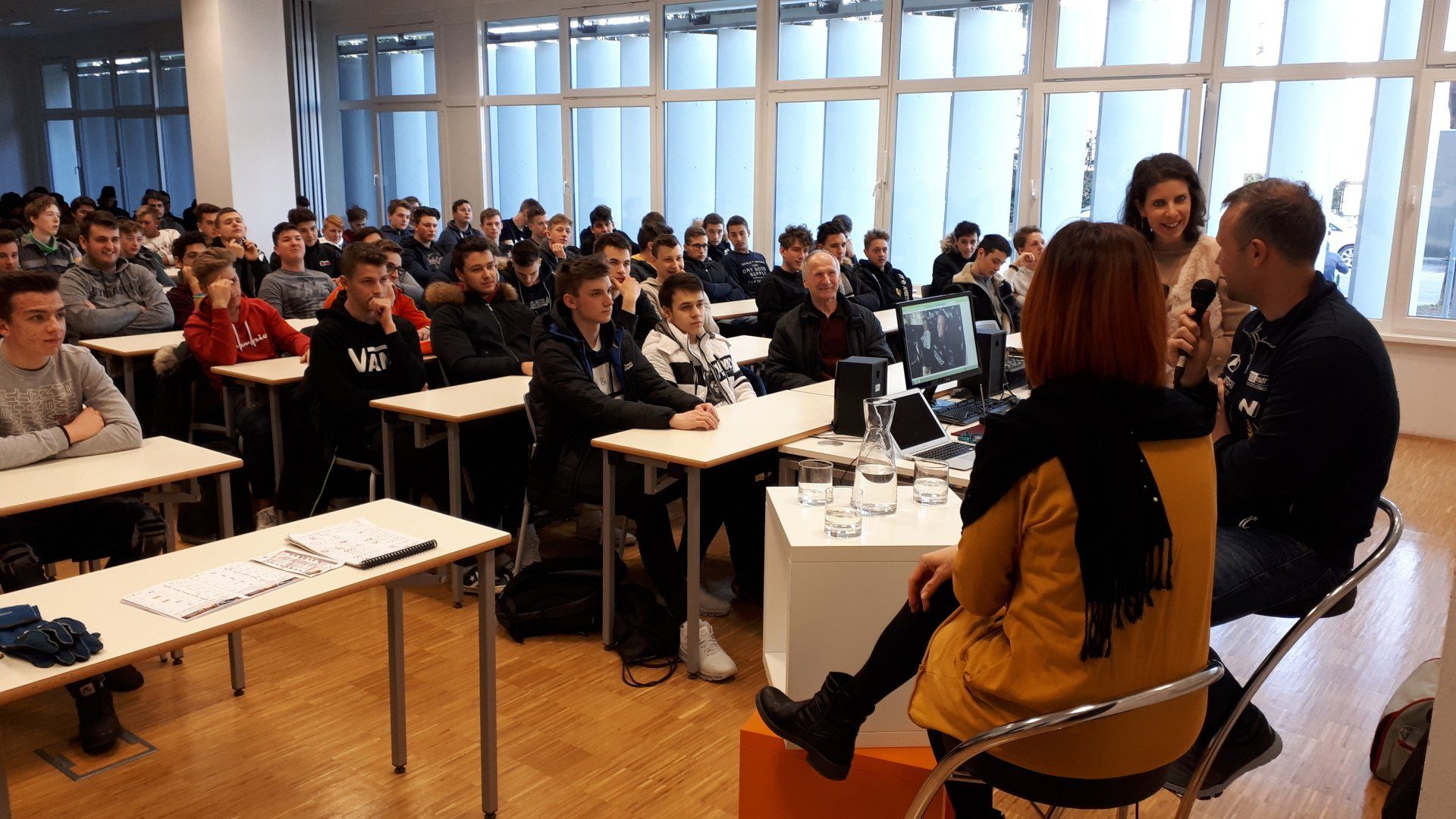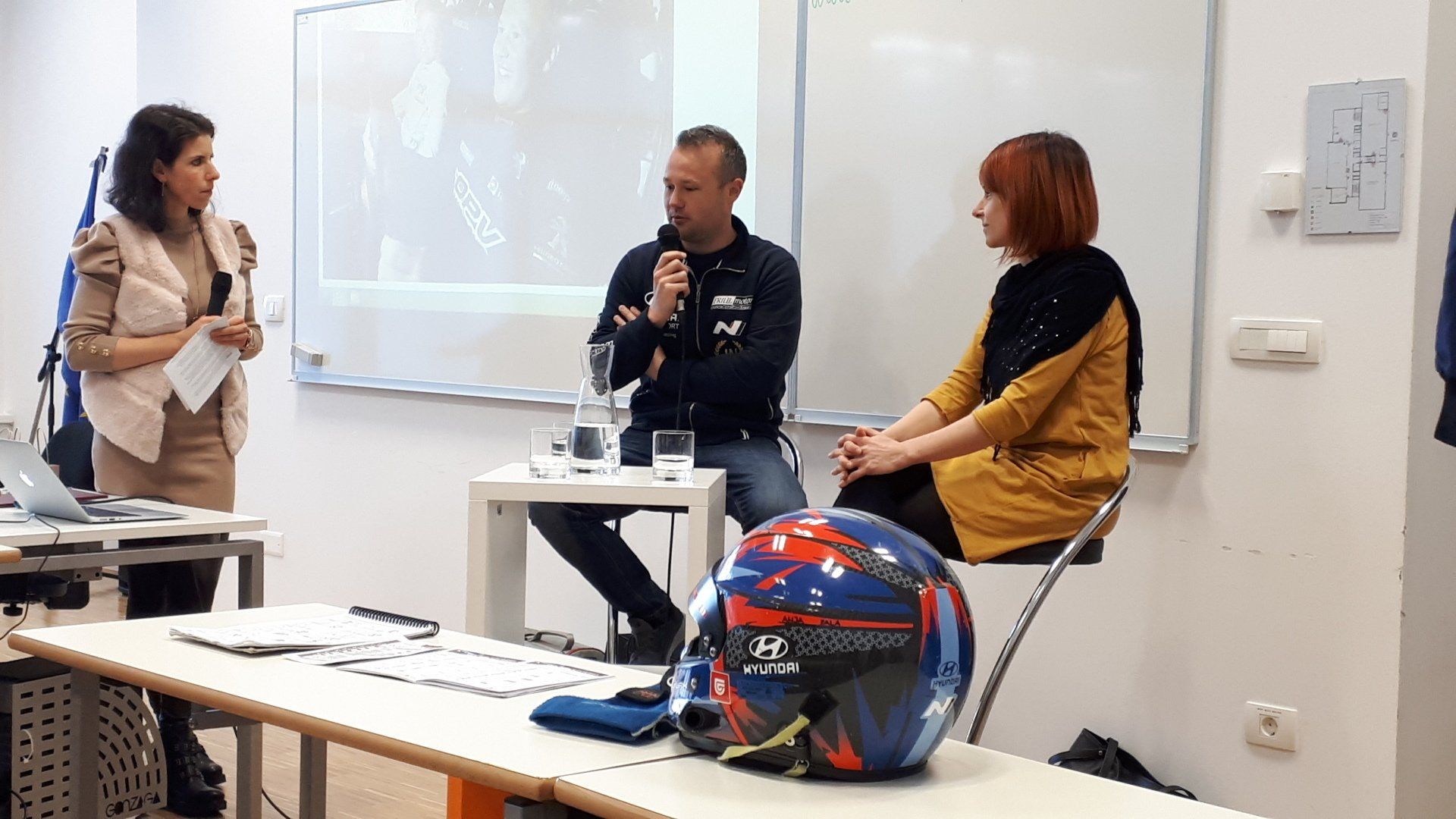 V četrtek, 13. februarja 2020, sta naša člana Rok Turk in Blanka Kacin v sklopu niza dogodkov Karierna zgodba, ki jih prireja Medpodjetniški izobraževalni center, obiskala Šolski center Nova Gorica. Spregovorila sta o svoji športni in poklicni poti, razložila zanimive podrobnosti iz sveta dirk in se dotaknila različnih področij, ki se navezujejo na njuno kariero. Dijaki so jima postavili veliko vprašanj, od povsem tehničnih, ki so se navezovala na njun dirkalnik, sodelovanja posadke, najljubše dirke, zanimalo pa jih je tudi kako začeti v športu, kakšen je rally. Rok je dogodek sklenil z mislijo, da naj se mladi ne ustrašijo preizkušanja novih, še neznanih stvari in naj kljub morebitnim neuspehom na svoji poti vztrajajo, da dosežejo cilj, ki so si ga zastavili.